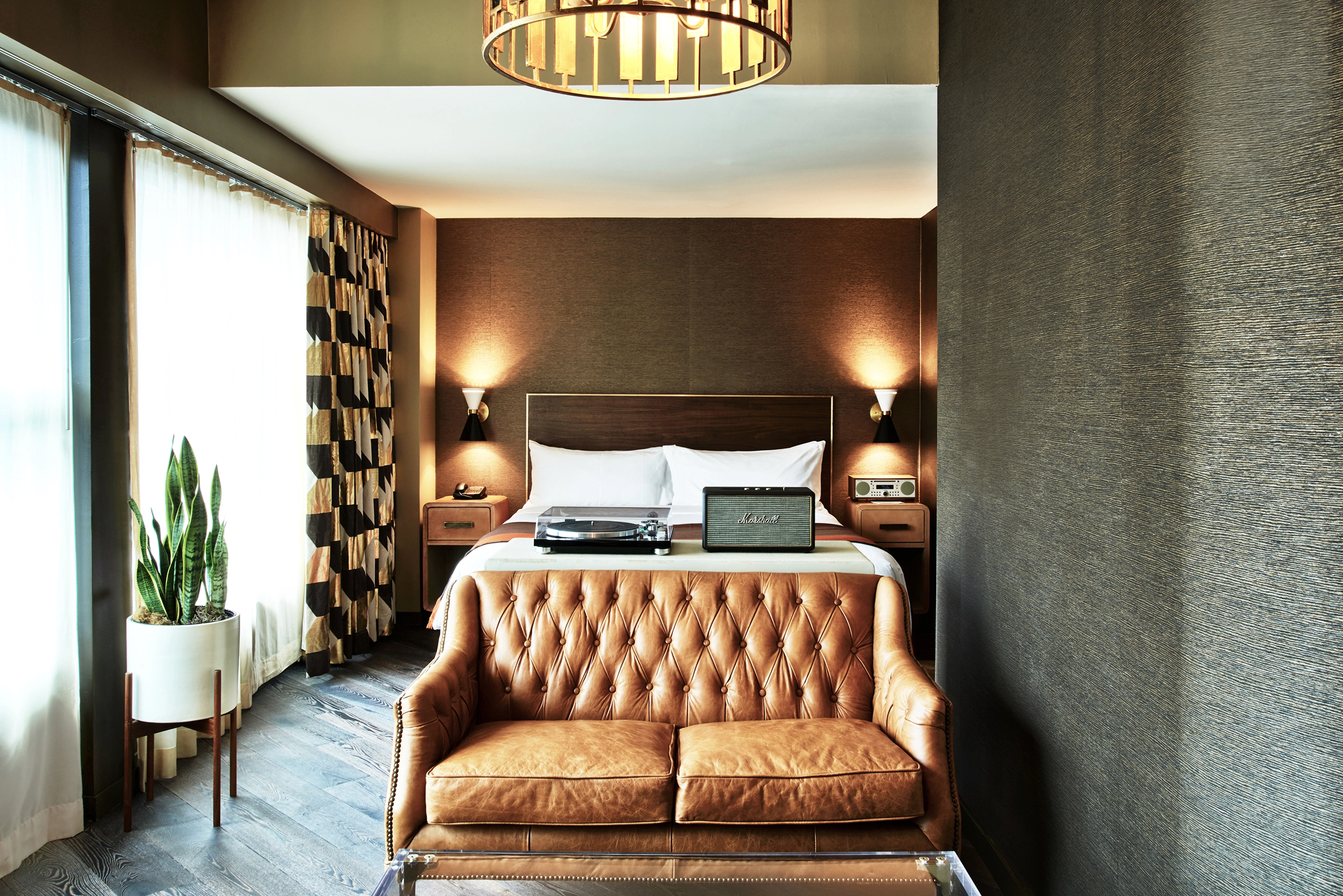For the action-seekers, attention-getters and rabble-rousers, The Roxy Hotel New York and its surrounding neighborhood have long been a hub of creativity. Consider that steps away, in 1978, the Mudd Club was the nexus of the city’s underground music and art scene with a gallery curated by Keith Haring. The Talking Heads were performing at Tribeca’s Ocean Club. Then came the era of The Odeon, Keith McNally’s still-open dining destination, catering to the movie and financial people colonizing Soho and Tribeca’s lofts. The Tribeca Grand was the first major hotel in an area home to boldface celebrities and a dynamic mix of restaurants, shops, financial institutions and thriving independent film companies. Envisioned by Soho Grand owners Leonard and Emanuel Stern to be a sister property, Tribeca Grand long thrived.
